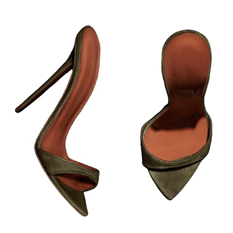 Zapatillas y sandalias de cuero suave de tacón alto para mujer, zapatos sexys, venta al por mayor