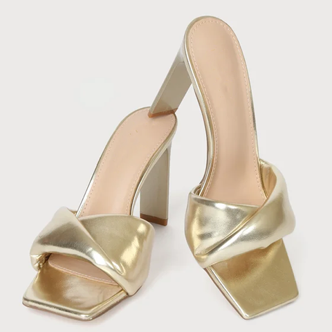 Zapatillas de tacón alto de cuero para mujer, sandalias deslizantes con punta cuadrada, nuevas llegadas